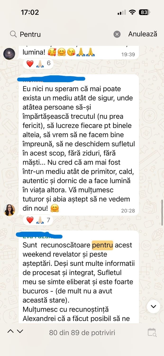 Comunitatea privată WhatsApp cu acces zilnic – un spațiu sigur, condus terapeutic, fără judecată